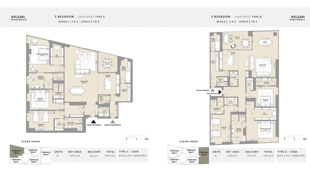 Bvlgari Resort & Residences provides a spacious floor plan option for the residents with its ultimate architectural design which inspires everyone. The Development comprises a limited collection of Apartments, Mansions, and Penthouses varying from size 1480 sq. ft. to 29,113 sq. ft. which provide a wide option to choose across, whereas the residents can enjoy its detailed facilities.