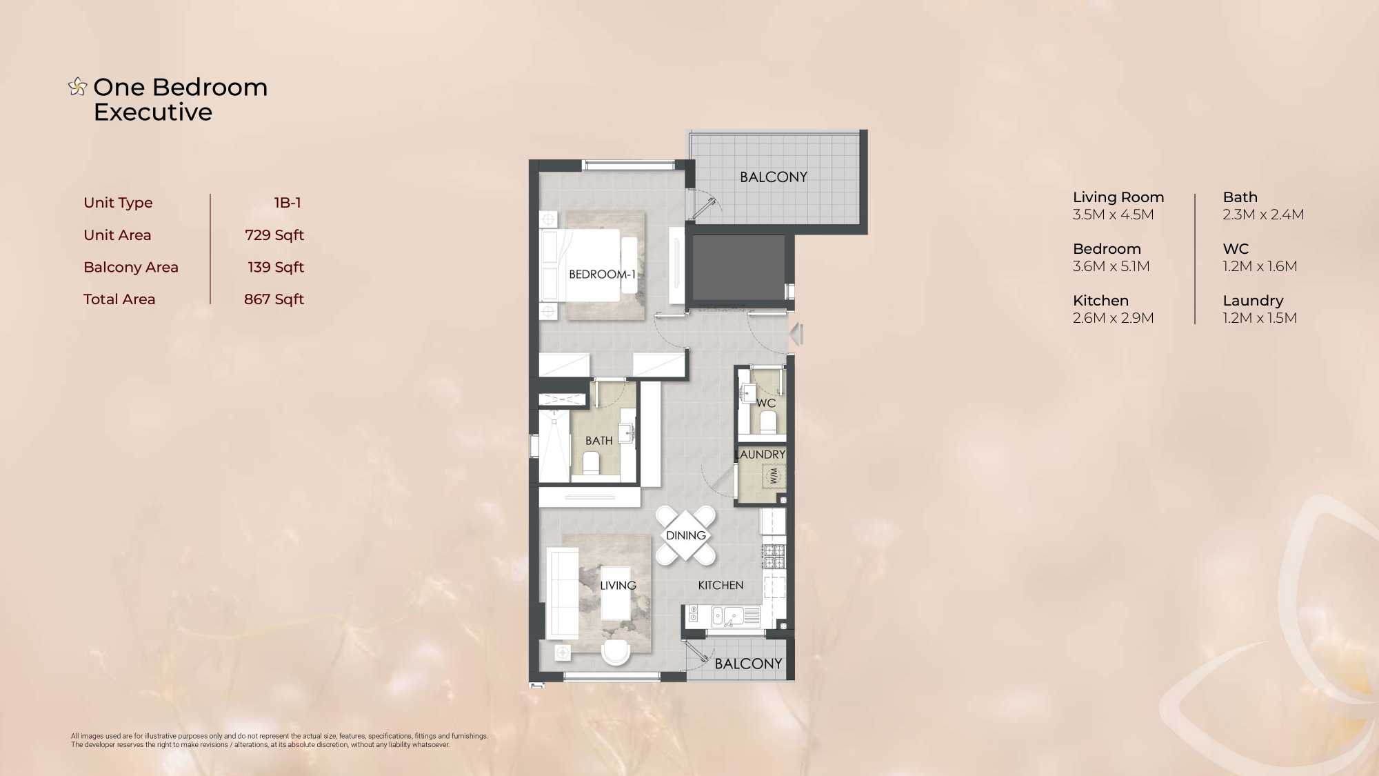 Alba Tower 1 Bedroom Executive Floor Plan